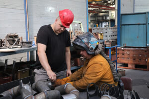 Чуть более года назад на предприятии образован сварочно-заготовительный цех (СЗЦ), который разместился на площадях бывшего ОТНП прессового цеха. Сегодня его коллектив во главе с начальником подразделения Павлом Кулешовым обеспечивает производство трубопроводов, поручней, лестниц и площадок для карьерных самосвалов «БЕЛАЗ».