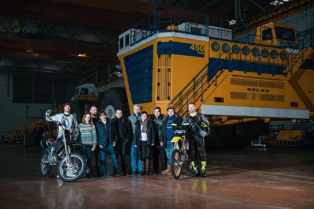 В 2017 году БЕЛАЗ стал площадкой для уникального рекорда, установленного российским спортсменом-мотофристайлером. Он совершил первый в мире FMX-прыжок с одного движущегося объекта на другой, в роли которых выступили белазовские самосвалы, в том числе и наш 450-тонный гигант. Подготовка велась около месяца, а видеосъемка длилась больше недели.