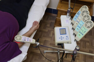 Электролечение, основанное на использовании электрических импульсов, представлено в «Дудинке» процедурами ДДТ, СМТ, дарсонваль, электросон. При ДДТ и СМТ идет стимуляция мускульной активности и метаболизма, снятие отеков, облегчение болевых ощущений, улучшается кровообращение. Как правило, эти процедуры показаны при заболеваниях опорно-двигательного аппарата (остеохондроз, травмы), нервной системы (невралгии, радикулопатии) и др. Дарсонваль используется для улучшения микроциркуляции, снятия воспалений, стимуляции роста волос и улучшения состояния кожи при акне.