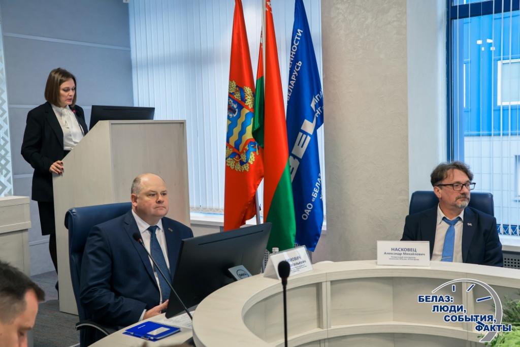 Во время пленарной части встречи «Стратегическое развитие БЕЛАЗа: время новых решений» перед гостями выступили заместитель начальника управления стратегического развития Юлия Малич, которая рассказала о том, что составляет стратегию БЕЛАЗА, поделилась тем, каким образом шла ее разработка, и генеральный конструктор – начальник научно-технического центра имени А.Н. Егорова Александр Насковец. Генеральный конструктор подробно остановился на перспективных направлениях в разработке и создании карьерной и новой для предприятия видах, в том числе подземной тематики, самосвалах на альтернативных видах топлива, что уже востребовано горнодобывающими предприятиями. Затронул он и тему кооперации завода с российскими производителями, совместными проектами в рамках импортозамещения.