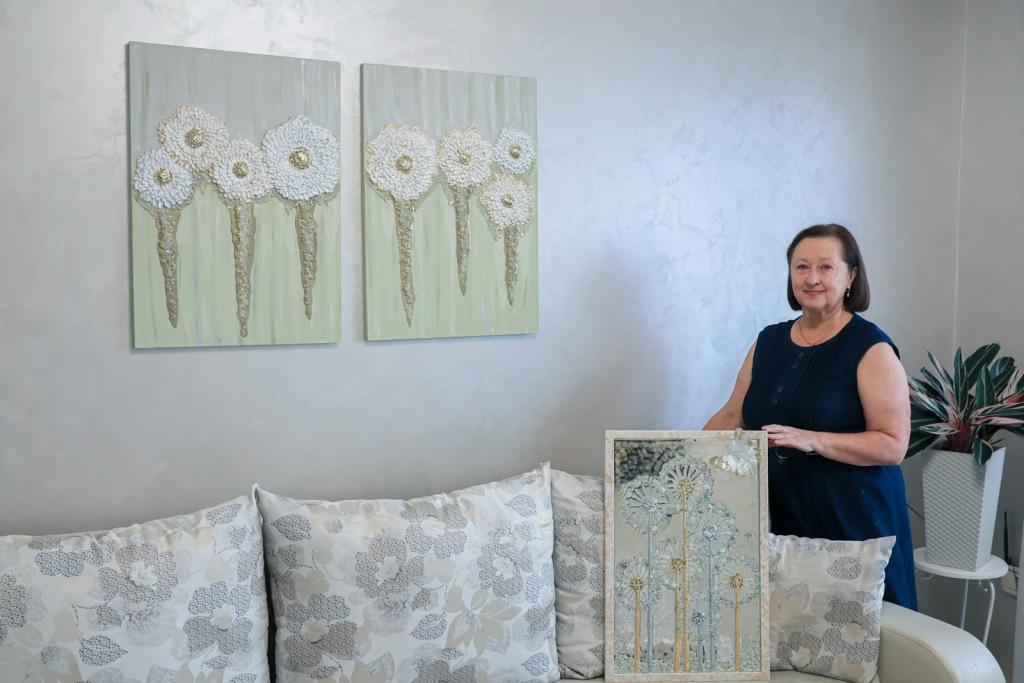 Помимо ватных игрушек ветеран предприятия создает панно из эпоксидной смолы (одно из последних увлечений нашей героини). Работы Ларисы Мацюк пользуются большим успехом на выставке изобразительного и декоративно-прикладного искусства «Краски осени», где белазовцы, находящиеся на заслуженном отдыхе, представляют свои работы. В этом году серия ее кукол удостоена специального приза от профсоюзной организации предприятия.