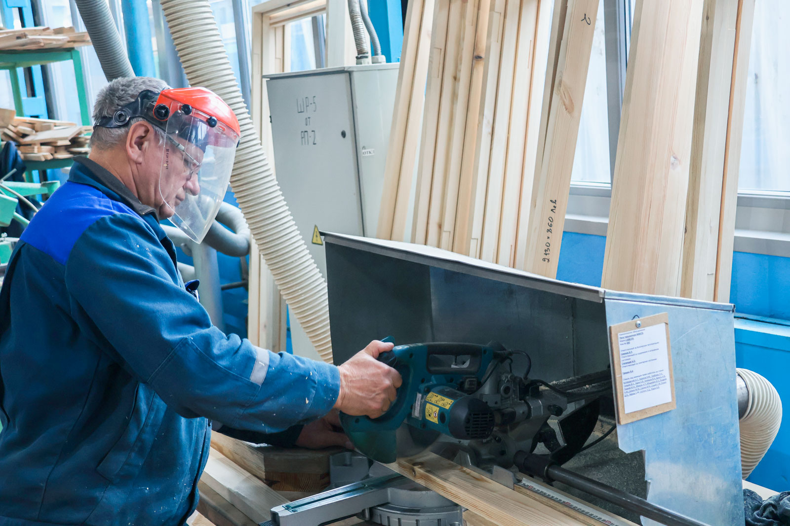 «Кудесники древесины» работают в управлении производственно-технической комплектации МСП «БСК»: на тарном участке идет изготовление тары, а вот столярный участок обеспечивает предприятие другой продукцией из дерева – дверными блоками (которые, кстати, установлены в заводоуправлении), элементами для ремонта деревянных оконных блоков, всей деревянной оснасткой и многим другим. В том числе – мебелью, которая производится из массива по индивидуальным заказам. Кто бывал в СПК «Первомайский» в «Белазаўскім маёнтку», наверняка обратил внимание на поистине эксклюзивную мебель банкетных залов. Так вот – она родилась на столярном участке БСК. В кабинетах многих руководителей подразделений, в залах совещаний, в актовых залах наших цехов стоит офисная мебель, изготовленная здесь, солидная, красивая, качественная.