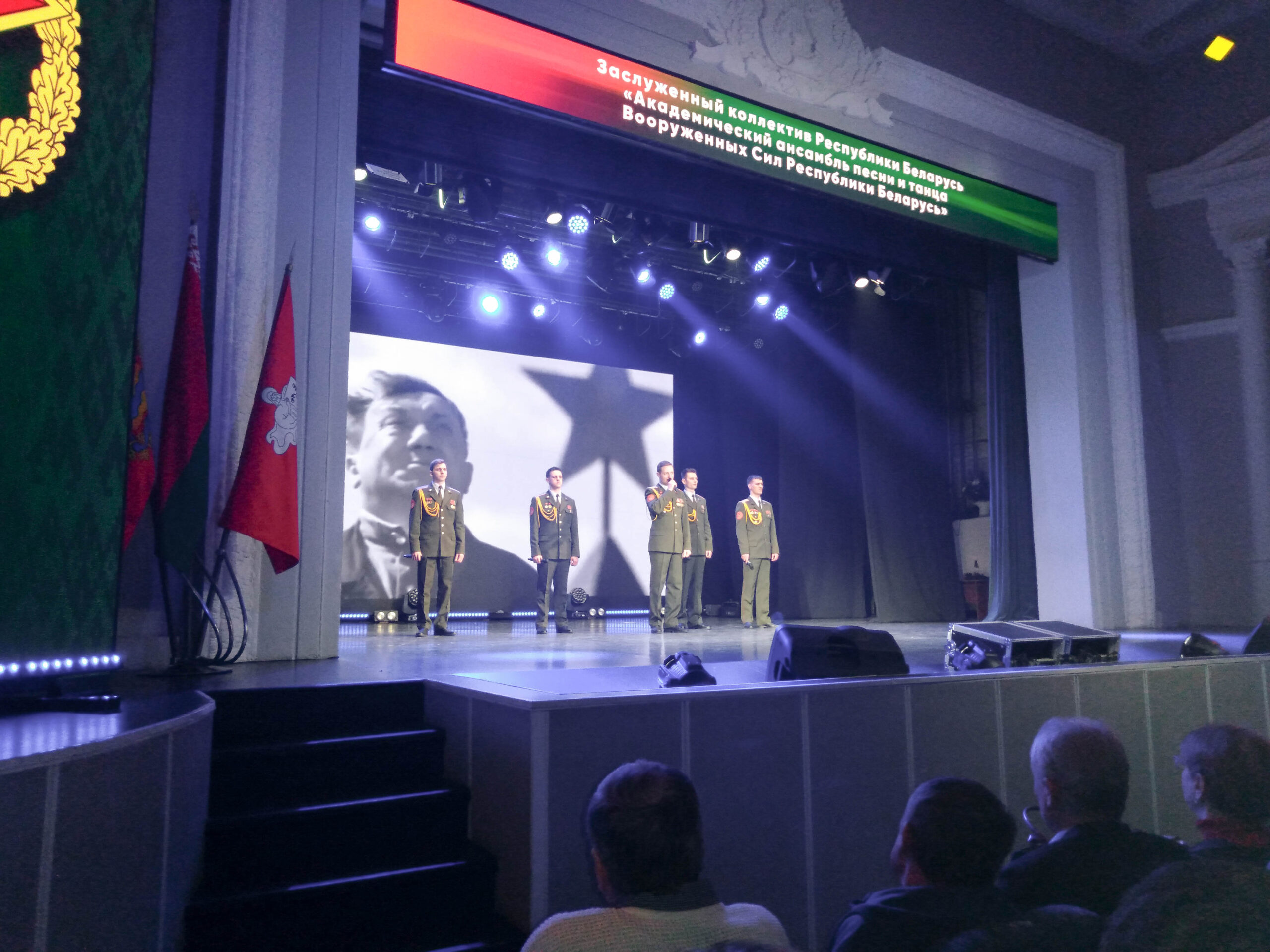 Для гостей была организована выставка современных образцов форменной одежды и вооружения, показательное выступление участников центра патриотического воспитания молодежи «Вектор», присяга их товарищей из недавно созданного на базе 65-й автомобильной бригады военно-патриотического клуба «Волот», а также великолепная концертная программа, исполненная городскими творческими коллективами и академическим ансамблем песни и танца Вооруженных Сил Республики Беларусь (на фото).