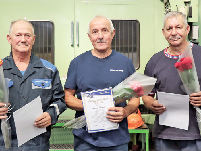 В цехе программных станков с трудовым 45-летним юбилеем поздравили Николая Муковозчика, оператора станков с программным управлением, Сергея Козловского и Владимира…