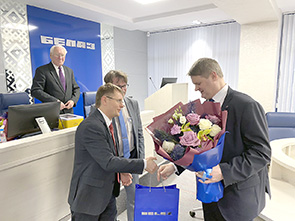 На протяжении всего этого времени сопредседателем НТС от Национальной академии наук Беларуси был академик Петр Витязь – белорусский ученый в области разработки новых материалов, технологий и машиностроения, доктор технических наук, профессор, заслуженный деятель науки БССР. Петр Александрович – давний друг нашего предприятия, с которым его связывают долгие годы совместной работы, реализация многих проектов. Заместитель генерального директора ОАО «БЕЛАЗ» – технический директор Сергей Лесин поблагодарил академика Витязя за работу, вручил памятный адрес и подарок от нашего предприятия.