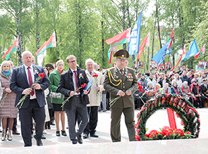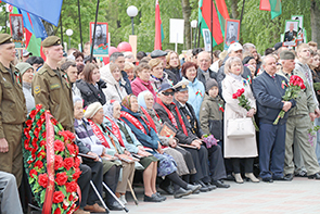 Отдать дань памяти и уважения тем, кто мужественно сражался за свободу родной земли, пришли представители городской власти, предприятий, учреждений, организаций, силовых ведомств, духовенства, молодежь города, а также почетные жители Жодино – Герой Беларуси Павел Мариев, Федор Пинчук и Леонид Танин.