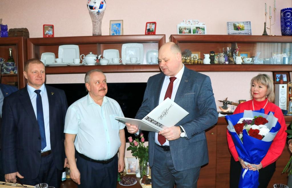 Заместитель генерального директора по организации труда, кадровой политике и идеологии Олег Климович вручил поздравительный адрес от генерального директора Сергея Лесина.
