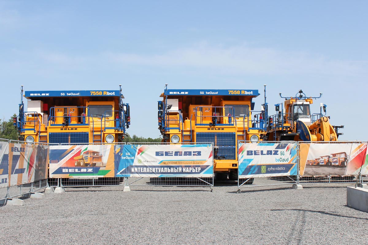 29 сентября участники форума «БЕЛАЗ‑2022. Цифровизация и экологичность – драйверы роста в горнодобывающей промышленности России» посетили месторождение «Ситницкое», где с июля 2020 года начал работу испытательный полигон для роботизированной техники «БЕЛАЗ». Этот комплекс высокоточных цифровых технологий позволяет управлять работой беспилотной карьерной техники дистанционно, с использованием технологии передачи данных по каналам связи 5G, и является частью стратегии БЕЛАЗа по цифровизации горнотранспортных работ. Испытания проводятся с использованием опытных образцов роботизированных карьерных самосвалов БЕЛАЗ‑7558R грузоподъемностью 90 тонн и дистанционно управляемого фронтального погрузчика БЕЛАЗ‑7825D.