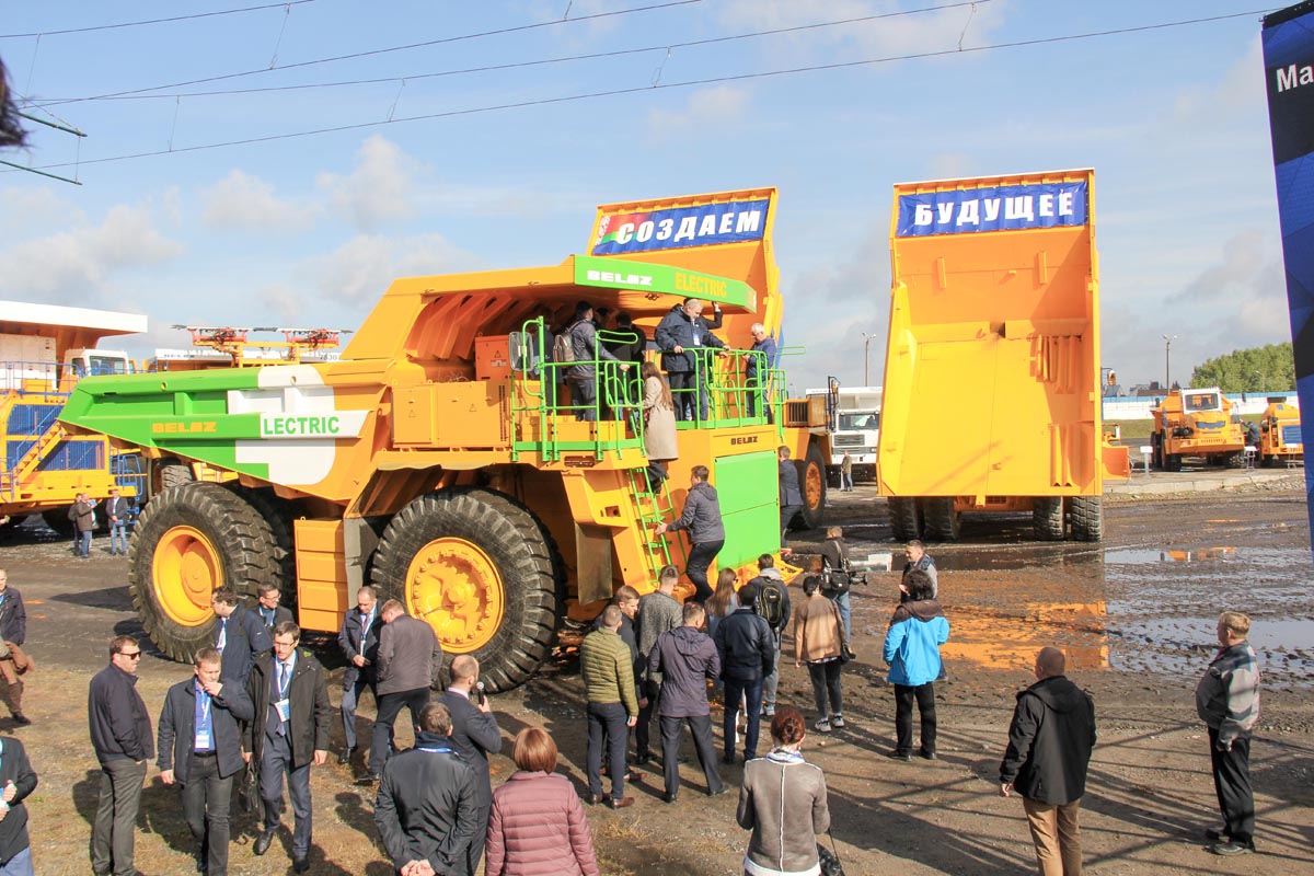 Второй день форума начался с парада техники БЕЛАЗа на заводском испытательном полигоне. Один за другим совершали круг по полигону рекордсмен Книги рекордов Гиннесса карьерный самосвал грузоподъемностью 450 тонн, 360-тонный БЕЛАЗ‑75602, троллейвоз БЕЛАЗ‑7530Е, гибрид БЕЛАЗ‑7513М, электрический БЕЛАЗ‑7558Е, единственный белой раскраски среди своих желтых собратьев БЕЛАЗ‑75520, техника «МоАЗ», спецтехника. Особый интерес вызывали, конечно же, новинки – электрический и гибридный самосвалы. Этим тяжеловесным величественным парадом достижений белазовского конструкторского гения командовал начальник бюро компоновки УГК НТЦ имени А. Н. Егорова Алексей Мелех.