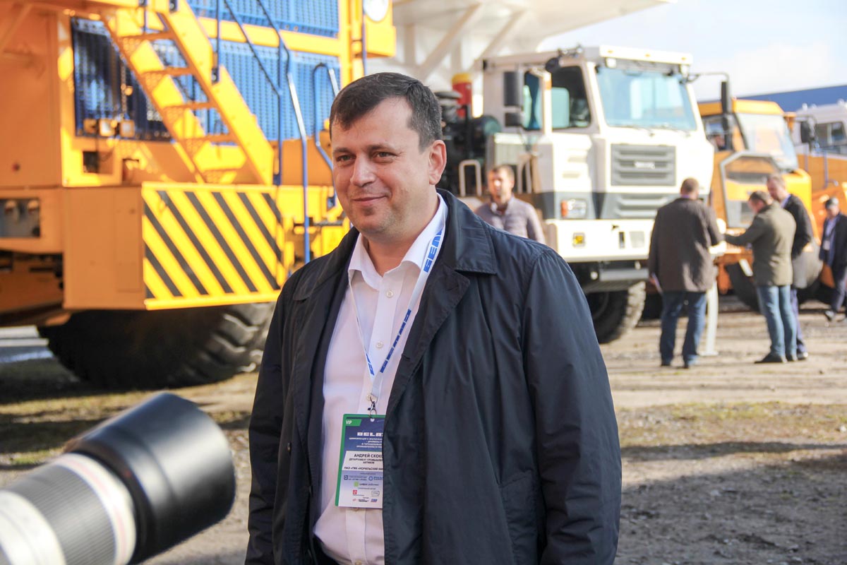 Андрей СКОКОВ, ПАО «ГМК «Норильский никель»: «Сейчас мы успешно используем на наших горных открытых работах 130-тонные машины, в этом году начали сотрудничать с БЕЛАЗом более плотно. У нас есть разные направления работы: в части экологии активно прорабатываем газовую машину, также есть наработки по аккумуляторно-троллейным. Хорошие впечатления от техники, гибрид – очень интересный проект, думаю, он будет решением многих проблем».