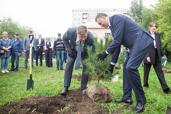 Делегация топ-менеджеров ОАО «БЕЛАЗ» во главе с генеральным директором Сергеем Никифоровичем вместе с руководителями АО «УК «Кузбассразрезуголь» заложила в городе Кемерово новую аллею из 60 восьмилетних саженцев кедра.